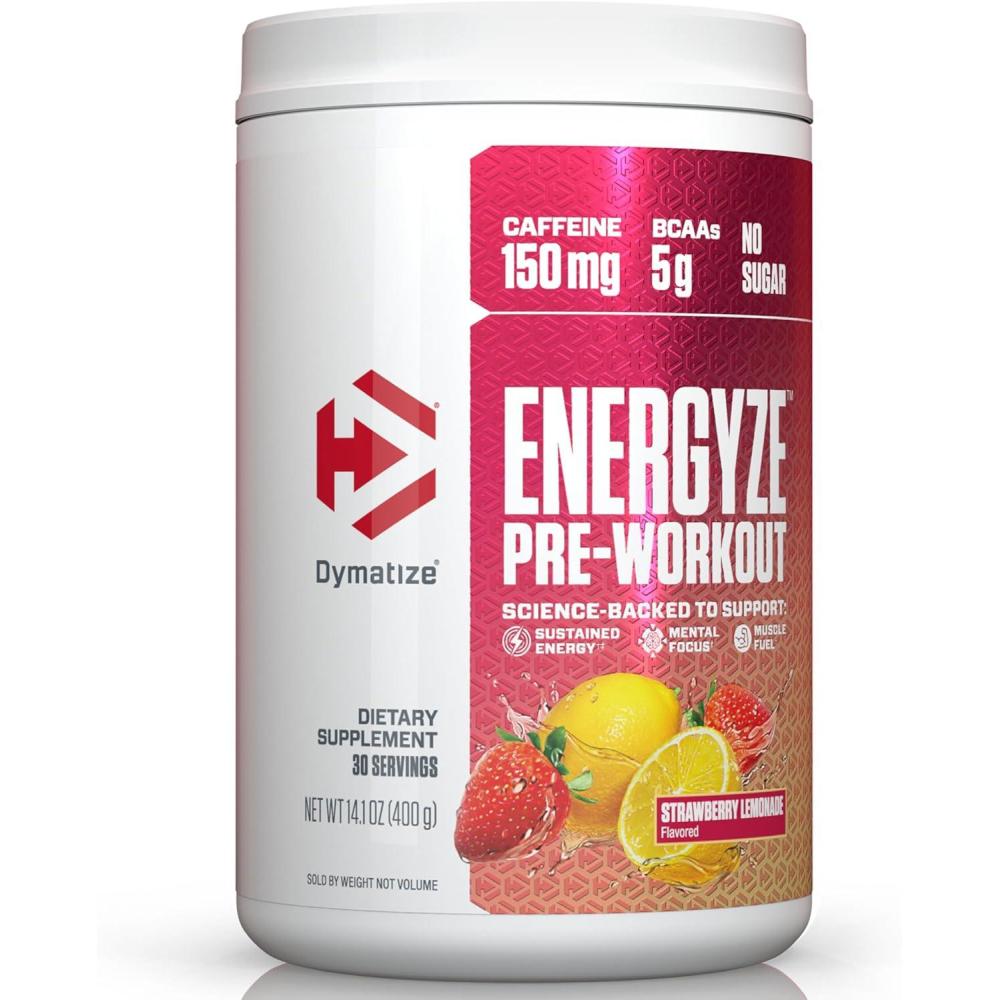 Dymatize Energyze Pre Workout Powder for Men and Women, Strawberry Lemonade Flavor, 150mg Caffeine, 5g BCAAs, Performance Blend of L-Theanine, L-Tyrosine, L-Citrulline, No Sugar, 30 Servings(Strawberry Lemonade)